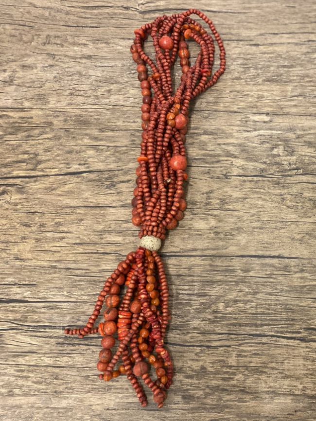 Este colar de mesa é confeccionado com sementes vermelhas, proporcionando identidade e elegância ao seu espaço.
